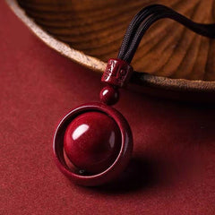Serenemyst Natural Cinnabar Six-Word Mantra Single Bead Protection Pendant Necklace