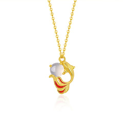This Serenemyst Sterling Silver Koi Fish Chalcedony Pendant Fortune Necklace features a handcrafted sterling silver koi fish pendant, its inlaid with smooth chalcedony in soft, iridescent tones. Koi, revered in Eastern culture, symbolize perseverance, abundance, and good fortune, while chalcedony—known as the "stone of harmony"—is believed to promote balance and positivity. The fish’s flowing form captures movement and grace, with detailed silverwork highlighting its elegant curves. Blending symbolic depth with artisanal craftsmanship, this piece serves as both a stylish accessory and a wearable emblem of luck, making every day feel like a journey toward prosperity.