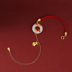 Serenemyst Red String Sterling Silver Koi Fish Jade Buckle Lucky Bracelet